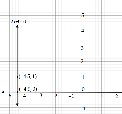 讓我們在方程$2x+(0)y=-9$中代入$y=0, 1$和$x=-4.5$