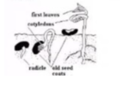 - 種皮破裂後形成主根。種子吸收地下水。胚根和胚芽出現後,莖向上生長。