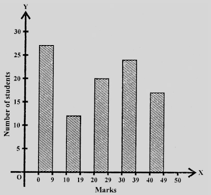以下是顯示100名學生數學試卷(滿分50分)成績的條形圖。請閱讀條形圖並回答以下問題
