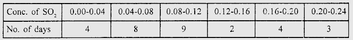 以下是某城市30天空氣中二氧化硫濃度(百萬分率)的頻數分佈表。