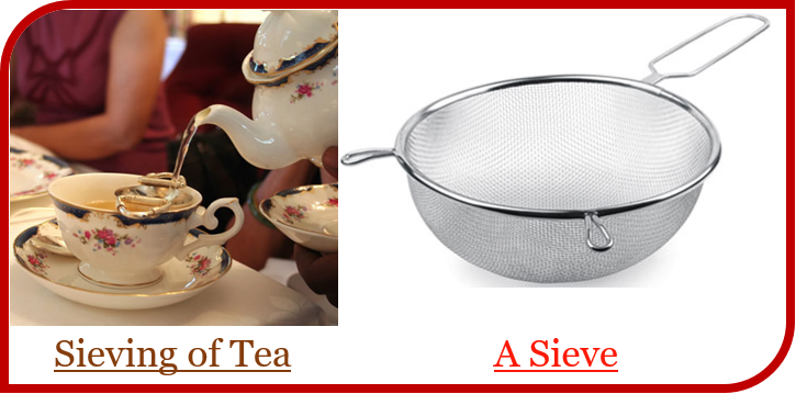 篩分 - 篩分是一種方法,其中細顆粒透過篩子的孔篩出,而較大的雜質則留在篩子上。