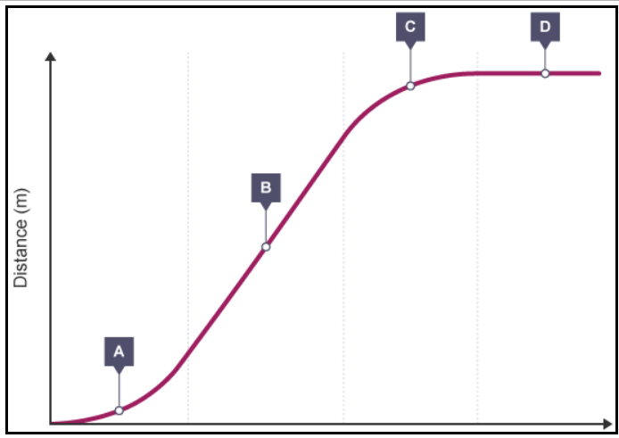 該圖通常是一條直線或曲線。如果直線以傾斜的方式向上,則可能是恆定的正速度;如果曲線向上,則表示存在正加速度,速度正在增加。