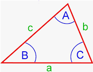在三角形 ABC 中,A、B、C 是三角形的三個角,如下圖所示