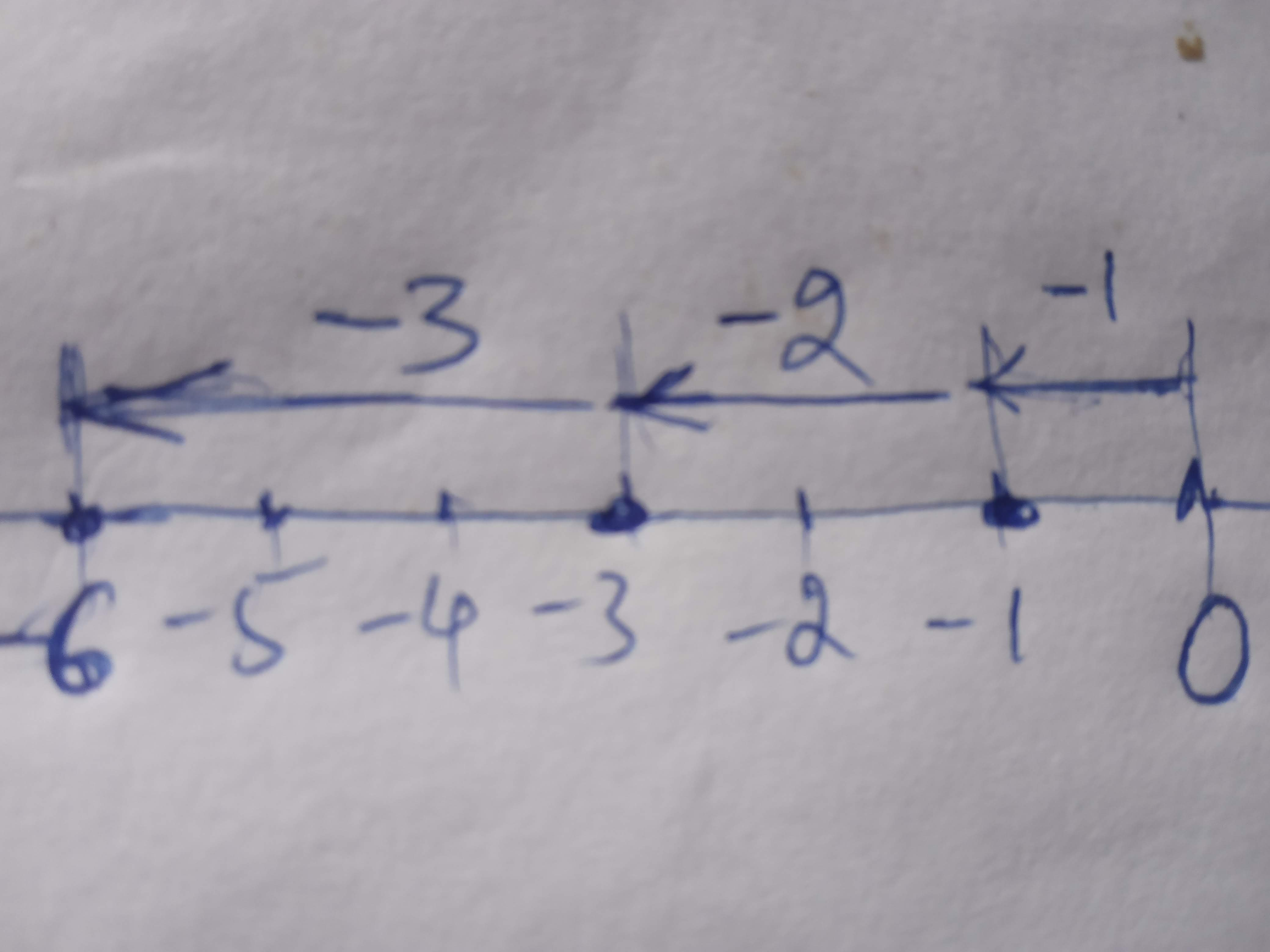首先向右移動 2 個單位,然後向右移動 3 個單位,最後向右移動 1 個單位,最終落在 6 上。