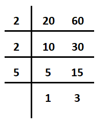HCF (20, 60) = 2 x 2 x 5 = 20