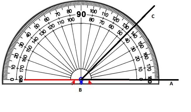 步驟2:調整量角器的底線,使其與線段BC對齊。