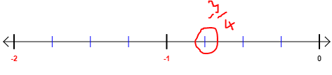 由於分子是 -3,因此0 左側的第三個標記將得到 -3/4