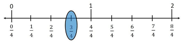 讓我們嘗試透過一個示例來理解這一點。假設我們要在數線上表示 $\frac{3}{4}$