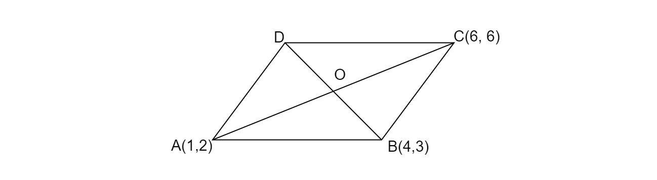 $\therefore O=\left(\frac{( x+4)}{2} ,\frac{( y+3)}{2}\right)$