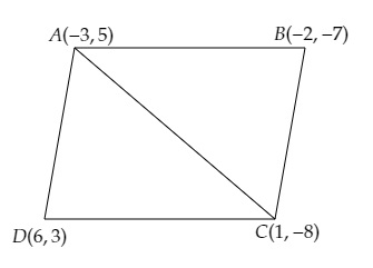 A(-3, 5), B(-2, -7), C(1, -8)和D(6, 3)是四邊形ABCD的頂點。