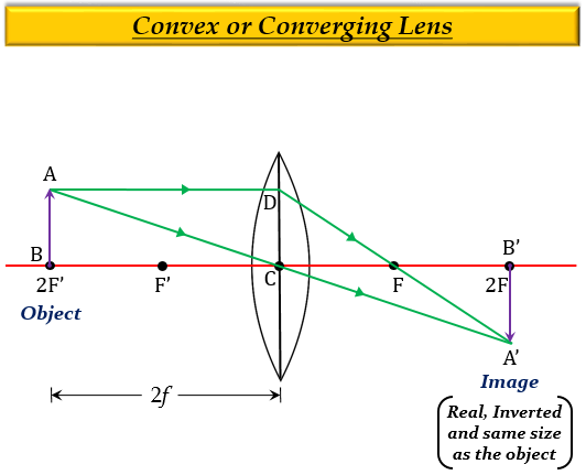 因此,當物體放置在凸透鏡的 2f 處時,會形成這種性質和大小的像。