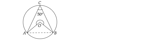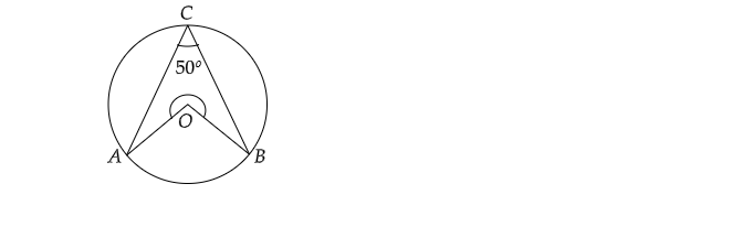 如果圓心為O,∠ACB=50°,則求∠AOB的度數(優角)。