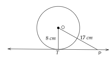 $OP = 17\ cm$ 且 $OT = 8\ cm$