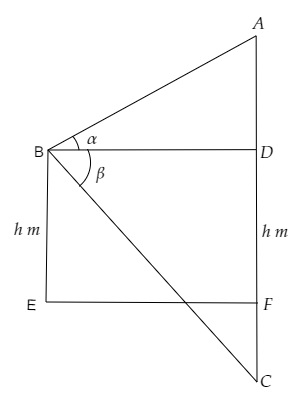 $\angle ABD =\alpha, BE=DF=h\ m$ 以及 $\angle DBC=\beta$