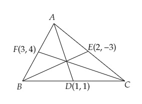 設$\triangle ABC$的頂點分別為$A (x_1, y_1)$、$B (x_2, y_2)$和$C (x_3, y_3)$,且$BC$、$CA$和$AB$的中點分別為$D(1,1)$、$E(2,-3)$和$F(3,4)$。