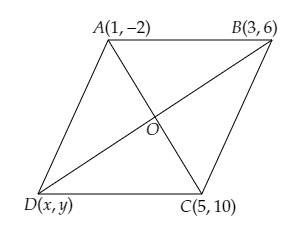 設第四個頂點為D(x,y),對角線AC和BD互相平分於O點。