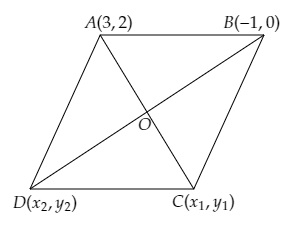 設第三個和第四個頂點為$C(x_1,y_1)$和$D(x_2,y_2)$,且對角線$AC$和$BD$互相平分於點$O(2,-5)$。