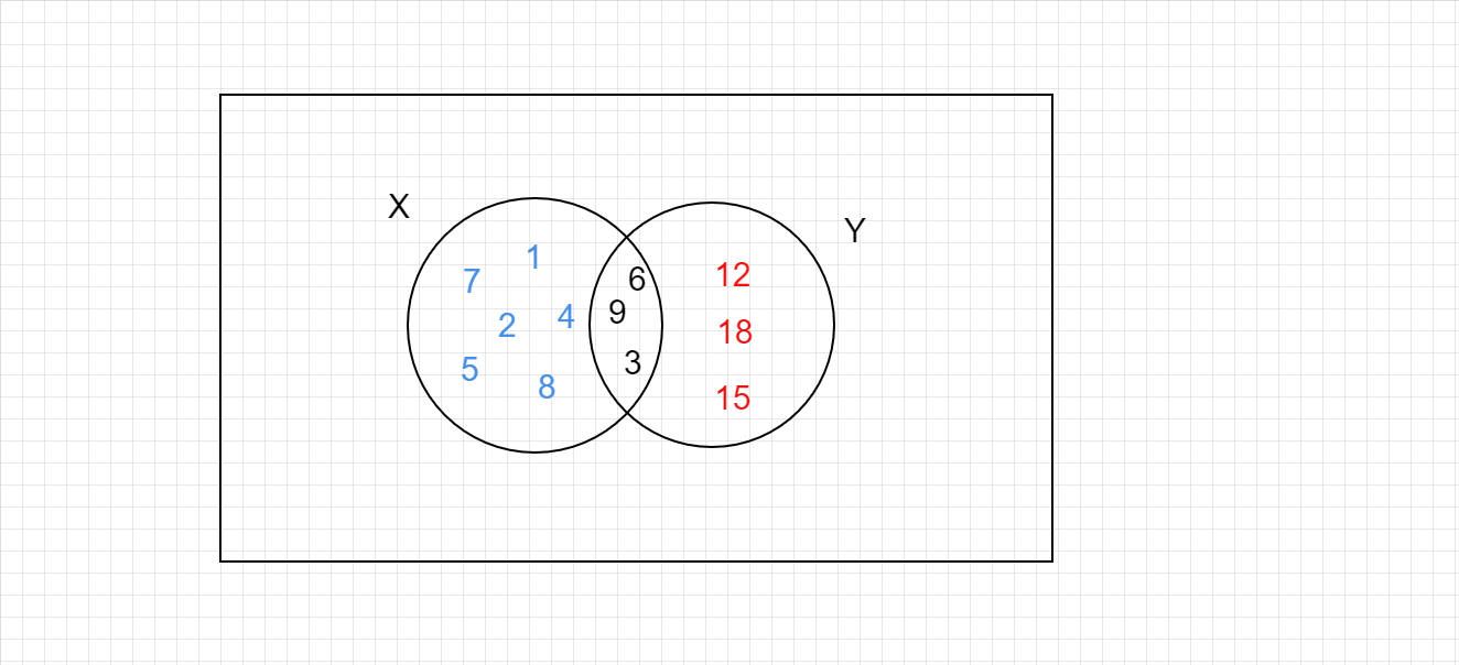 $(Y -X)$ = {12 , 15 , 18} [僅在 Y 中但不在 X 中的值]