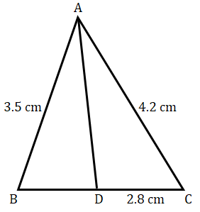 如果AB = 3.5 cm,AC = 4.2 cm,DC = 2.8 cm,求BD。