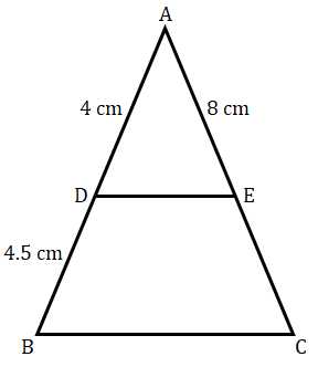 AD = 4 cm,DB = 4.5 cm,AE = 8 cm。