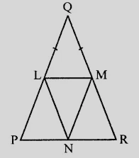 在三角形PQR中,PQ = QR,且L、M和N分別是邊PQ、QR和RP的中點。