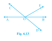 如圖 6.13 所示,直線\( \mathrm{AB} \)和\( \mathrm{CD} \)相交於\( \mathrm{O} \)。如果\( \angle \mathrm{AOC}+\angle \mathrm{BOE}=70^{\circ} \)且\( \angle \mathrm{BOD}=40^{\circ} \),求\( \angle \mathrm{BOE} \)和\( \angle \mathrm{COE} \)的反射角。