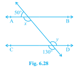 因此,我們得到 $y=130^o$ (因為 $X$ 和 $Y$ 是對頂角)