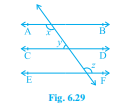 如圖 6.29 所示,如果 AB∥CD,CD∥EF 且 y:z=3:7,求 x 的值。