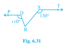 如圖 6.31 所示,如果 PQ ∥ ST,∠PQR = 110°,∠RST = 130°,求∠QRS。