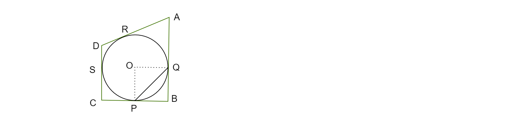 已知:圓心為 O 的圓內接於四邊形 ABCD,分別與邊 AB、BC、CD 和 DA 相切於點 P、Q、R 和 S。
