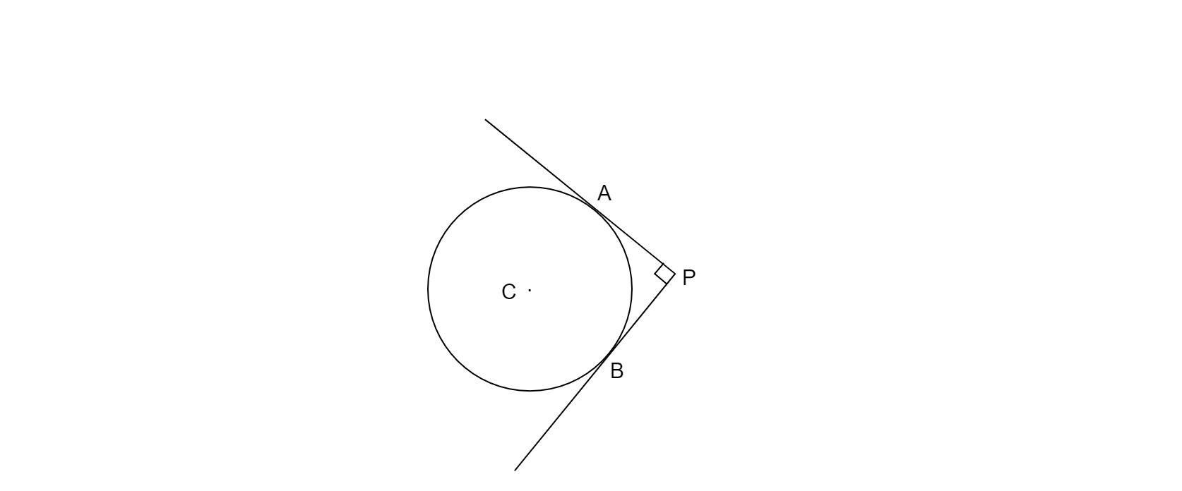 PA 和 PB 分別是圓在 A 和 B 點的切線,從圓外一點 P 引出。