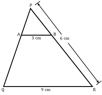 $AB = 3\ cm, QR = 9\ cm$ 且 $PR = 6\ cm$