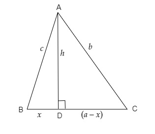 $b^2=h^2+(a-x)^2$