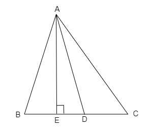 在給定圖形中,D 是邊 BC 的中點,且 AE ⊥ BC。