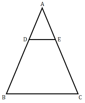 在下圖中,$DE\ ∥\ BC$,使得 $AE\ =\ (\frac{1}{4})AC$。