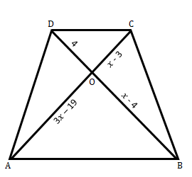 OA = 3x – 19,OB = x – 4,OC = x – 3 且 OD = 4。