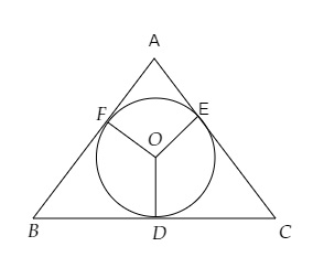 一個圓內切於三角形 ABC,分別與三角形的三邊相切於點 D、E 和 F。