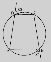 如圖所示,$ABCD$是一個圓內接四邊形。求$x$的值。