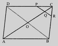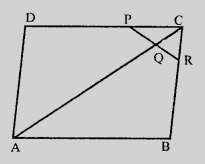 如圖所示,$ABCD$是一個平行四邊形,其中$P$是$DC$的中點,$Q$是$AC$上的一點,使得$CQ = \frac{1}{4}AC$。如果延長$PQ$與$BC$交於$R$,證明$R$是$BC$的中點。