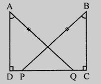 如圖所示,$AD \perp CD$ 且 $CB \perp CD$。如果 $AQ = BP$ 且 $DP = CQ$,證明 $\angle DAQ = \angle CBP$。