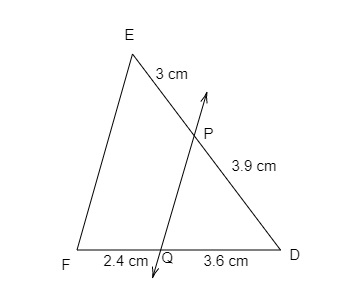 $DP=3.9\ cm, PE=3\ cm, DQ=3.6\ cm$ 和 $QF=2.4\ cm$。