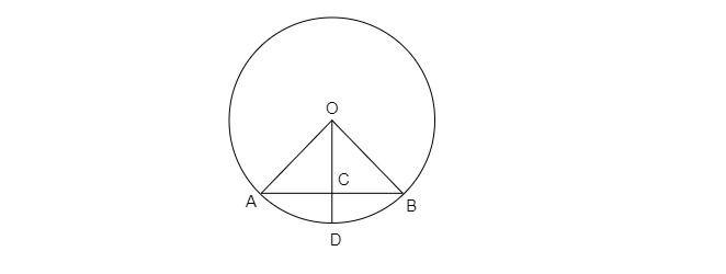 在下圖中,$OA=5\ cm,AB=8\ cm$,且$OC$垂直於$AB$,求$CD$的值。