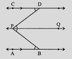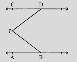 直線$AB$和$CD$平行,$P$是圖中所示的任意一點。