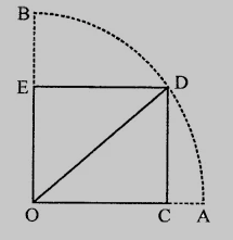 矩形$OCDE$內接於半徑為$10\ cm$的圓的四分之一圓弧中。