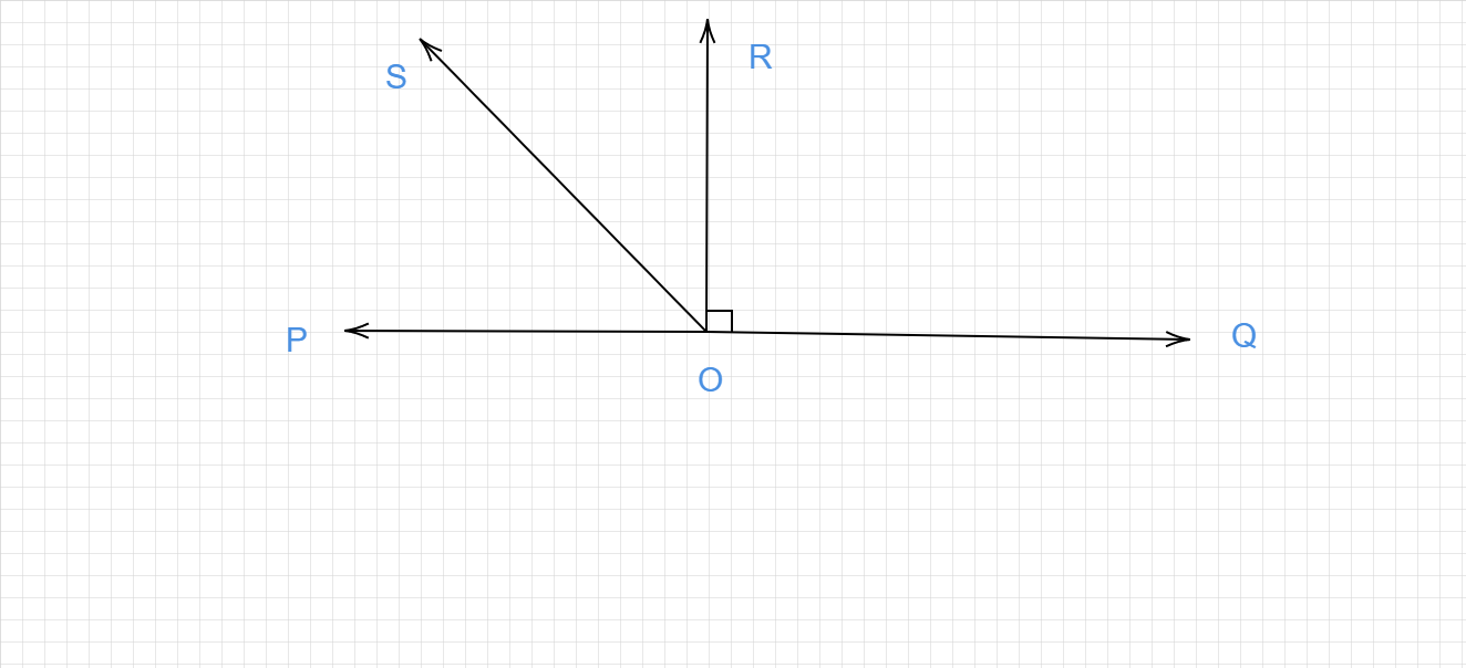 在給定的圖形中,POQ是一條直線。射線OR垂直於直線PQ。OS是另一條位於射線OP和OR之間的射線。證明