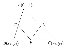 在△ABC中,頂點A的座標為(0,-1),D(1,0)和E(0,1)分別是邊AB和AC的中點。