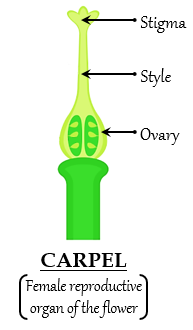 4) 雌蕊群 是雌性生殖結構 ,由心皮組成。它由三個結構組成,如花柱、子房和柱頭。花粉粘在柱頭上,並透過花柱到達子房。子房包含胚珠,胚珠產生種子。
