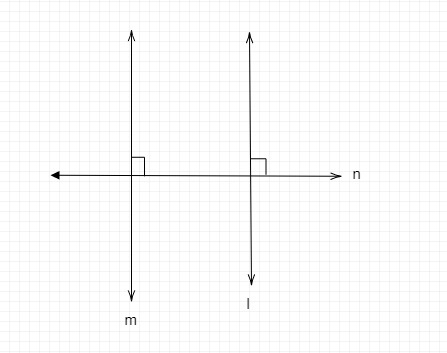 - 如果 $l, m, n$ 是三條直線,使得 $l \parallel m$ 且 $n \perp l$,證明 $n \perp m$。