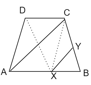 梯形ABCD中,AB平行於DC。一條平行於AC的直線與AB相交於X,與BC相交於Y。