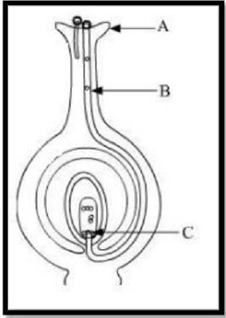 在圖中命名顯示的部件A、B 和 C,並寫出它們的功能: